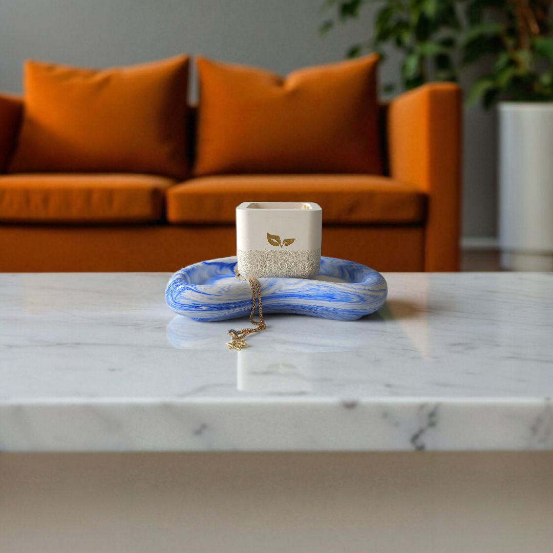 Our designs are versatile and intentional: trays can hold your favorite keepsakes, organize your desk, or serve as a centerpiece; candles illuminate moments of calm or celebration. Each piece is meant to be treasured, reused, and woven into your daily life.